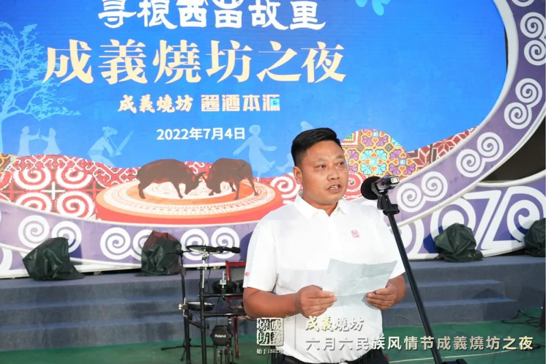 成義燒坊副總經理(lǐ)劉勇爲本次晚會緻詞:“在這美麗的夜晚,我們成義燒坊很榮幸和各位齊聚西苗故裡(lǐ),我感到分(fēn)外的欣喜,希望今晚我們在這美妙的歌聲中享受快(kuài)樂、在這熊熊篝火(huǒ)中盡情燃燒熱(rè)情、在這歡樂的歌舞中與成義燒坊架起友誼的橋梁。”并宣布“成義燒坊之夜”晚會正式開始。