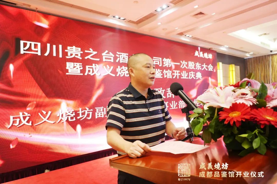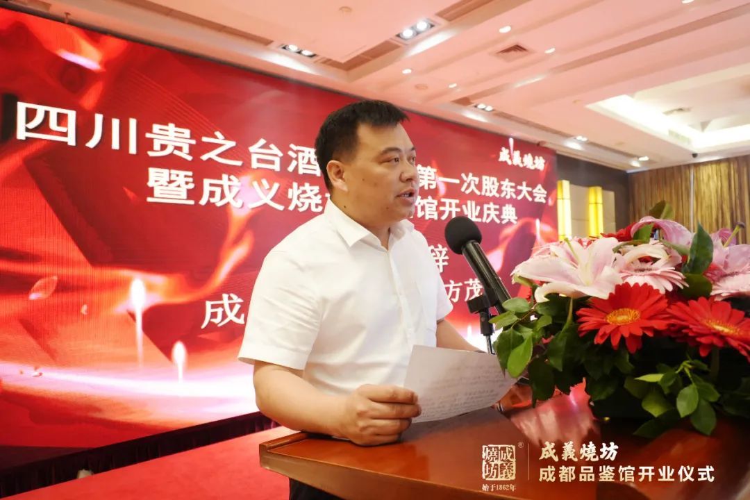 四川酒類流通協會執行會長鐵犁,四川大(dà)學白(bái)酒研究院院長歐陽劍,集團公司董事(shì)長方廷本,集團公司總經理(lǐ)方茂軍,集團公司副總經理(lǐ)、成義燒坊事(shì)業部總經理(lǐ)江勇、集團公司品宣事(shì)務部總經理(lǐ)潘佳,四川貴之台酒業董事(shì)長苟安平,監事(shì)長胡憲臣,總經理(lǐ)李晨及四川貴之台酒業部分(fēn)股東及員(yuán)工(gōng)代表親臨開業現場,貴之台酒業董事(shì)李德榮主持了此次開業慶典。